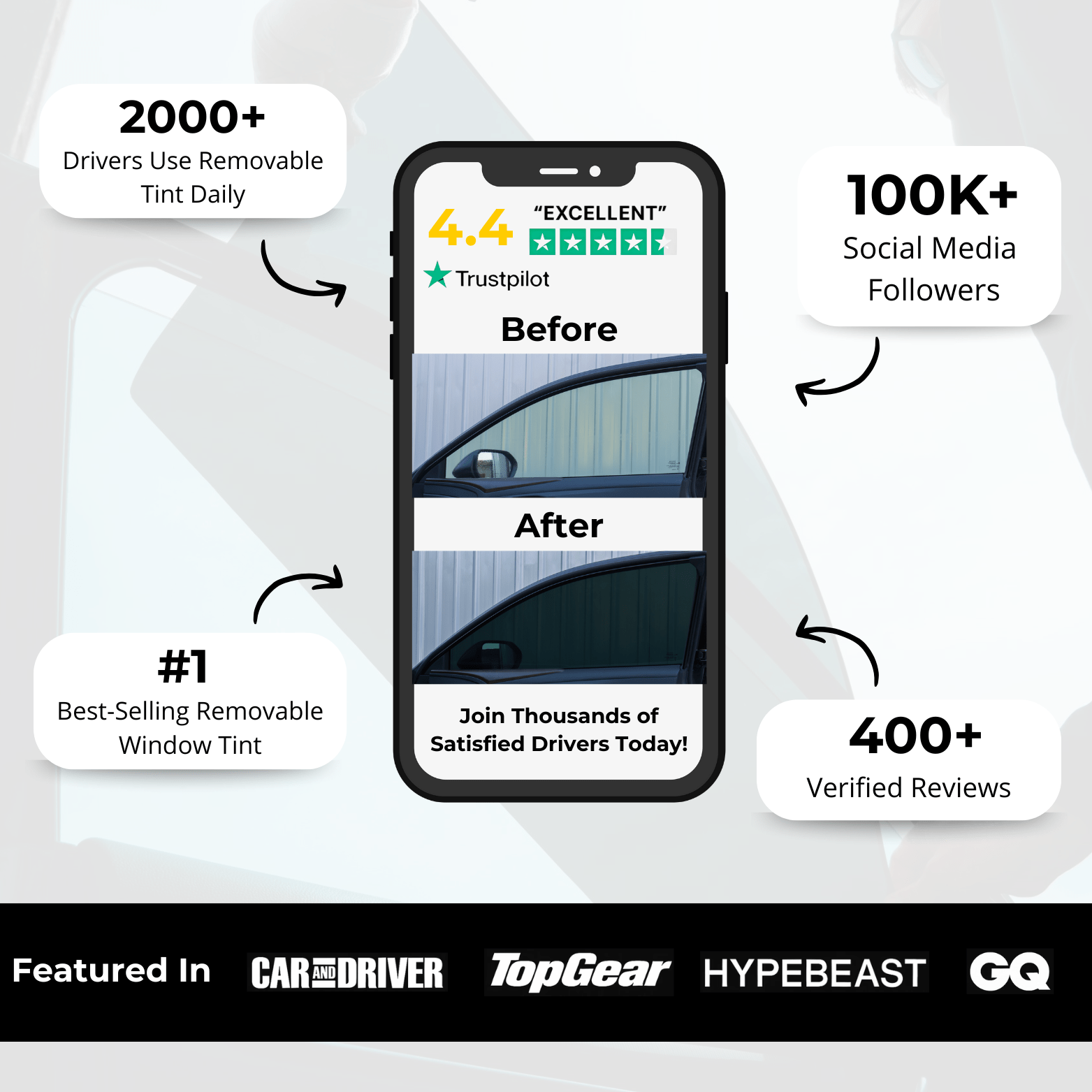 Forget wasting time and money on permanent tint. Our removable tint goes on smooth in seconds, no tools, no stress. Peel it off just as easily and reapply as often as you like.